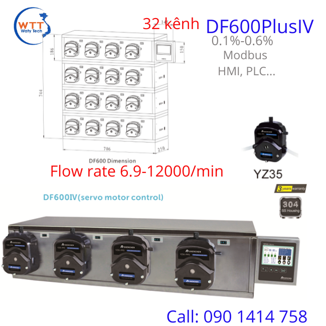 ►Bộ bơm định lượng đa kênh DF600Plus IV-32 channels tốc độ lưu lượng 6.9 đến 12000 mL/min.